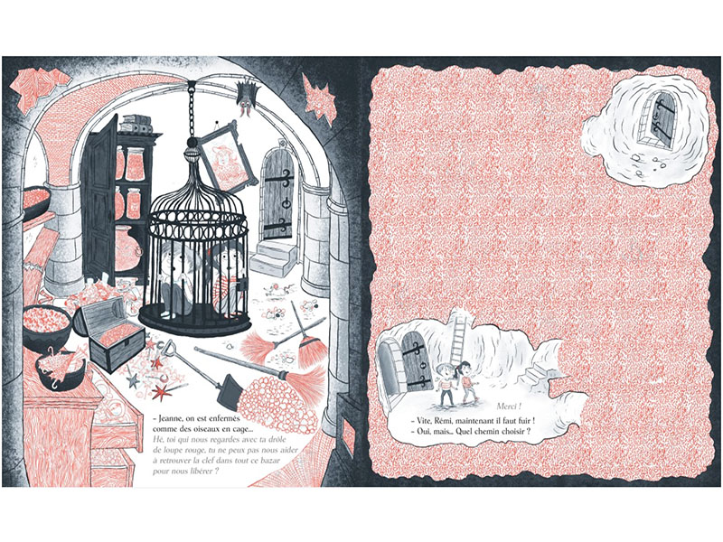 Le grand album carré dévoile des illustrations en noir et rouge. Une bichromie surprenante et magique ! Car seule l’utilisation de la loupe rouge vous permettra de détecter les dessins cachés dans le dessin ! Un système ingénieux qui pousse à lire tranquillement le livre et à s’attacher aux détails.