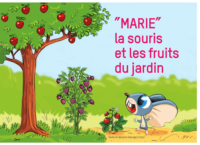 Ce livre est destiné aux tout-petits de 2 à 4 ans. Il promène le petit lecteur-auditeur dans le jardin, à la découverte de ses fruits. Le cheminement commence par les fruits trouvés au sol, puis s’élève pour dévoiler les fruits des arbustes et ensuite des arbres. « Ce kamishibaï est inspiré par la nature, le monde végétal et animal, et vise à apprendre aux enfants les éléments qui nous sont proches comme les légumes, les couleurs, les sons, les fruits », explique Georges Crisci. Le créateur reste fidèle à ses créations autour de la nature, dont de petits animaux sont les héros : le lapin, la taupe, l’écureuil, le poulpe ou le rouge-gorge. Ce petit kamishibaï compte 12 planches, que vous pourrez glisser dans un « butaï », un petit théâtre de bois, qui vous permet de faire coulisser les planches. L’enfant regarde l’image, pendant que vous lui lisez le texte écrit au dos de la planche. Marie la souris sortira prochainement en livre.