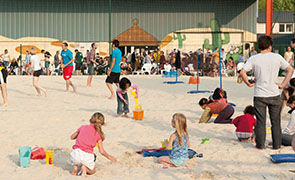La nouvelle équipe, en place depuis mars 2018, a décidé d’ouvrir plus largement le lieu. Les familles peuvent désormais venir, sans réservation, les jeudis et vendredis de 16h à 18h et les samedis de 10h à 12h (s’il fait beau !). Les bénévoles préparent « le matériel » et attention, c’est sérieux ! Seaux, moules pour les constructions de châteaux de sable, ballons, transats, parasols, etc. Brumisateurs, vestiaires et sanitaires complètent le lieu, orné cette année de 4 superbes palmiers. Comment venir ? Prenez votre adhésion à 5€ à l’association AD2S (qui gère l’équipement) et l’abonnement à 15€ par famille qui donne un accès à la plage pour toute la saison. Il existe une formule où vous payez 5€ par visite. La Plage reçoit aussi les centres aérés, les anniversaires ; un animateur sportif encadre alors les activités.