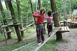 Dès 8 ans, tous les circuits sont accessibles. L'idée est de les faire tous ensemble en famille, et non pas de passer par des niveaux. Il existe 6 parcours "enfant" et 5 autres avec une taille dès 1,35 m. Linge de vie continue sur l'ensemble du parc. Accès au parc pour 2 h 30.